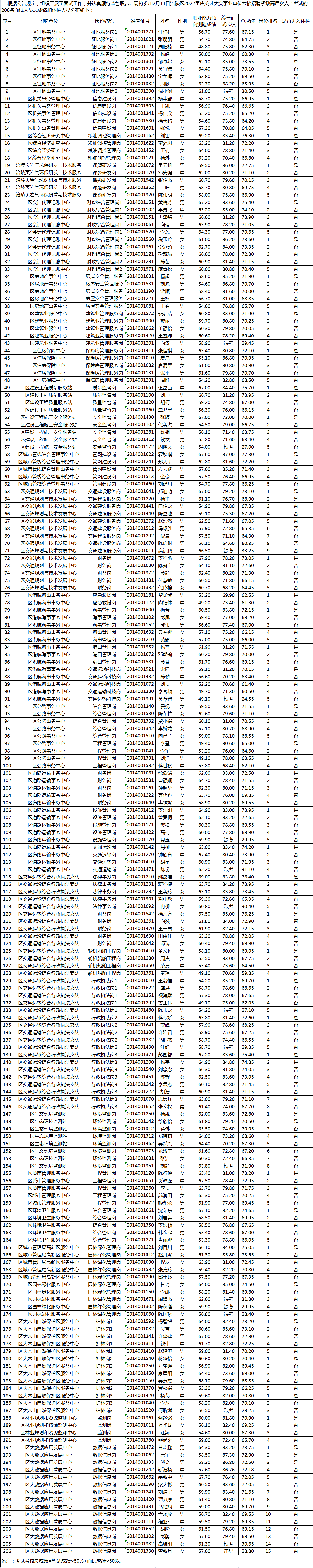 重庆市涪陵区2022重庆英才大会事业单位考核招聘紧缺高层次人才总成绩和体检人员公布表(2月11日)