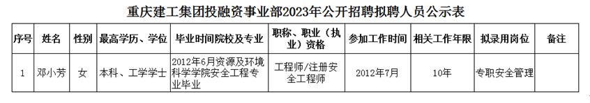 附件:重庆建工集团投融资事业部2023年公开招聘拟聘人员公示表