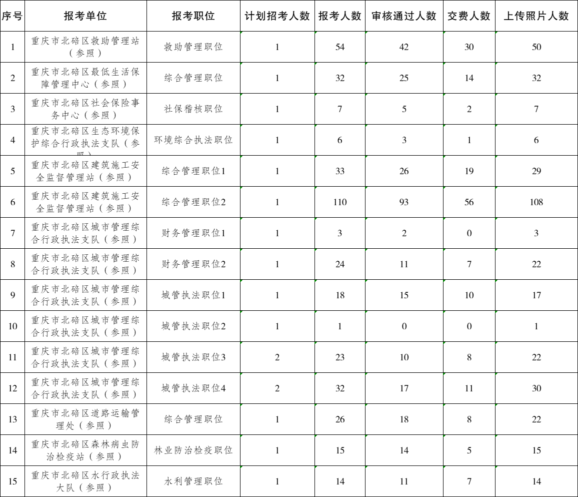 重庆市北碚区2023年公开遴选公务员报名情况统计(截至3月29日下午17时)