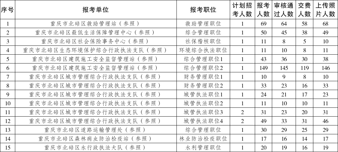 重庆市北碚区2023年公开遴选公务员报名情况统计(最终版)