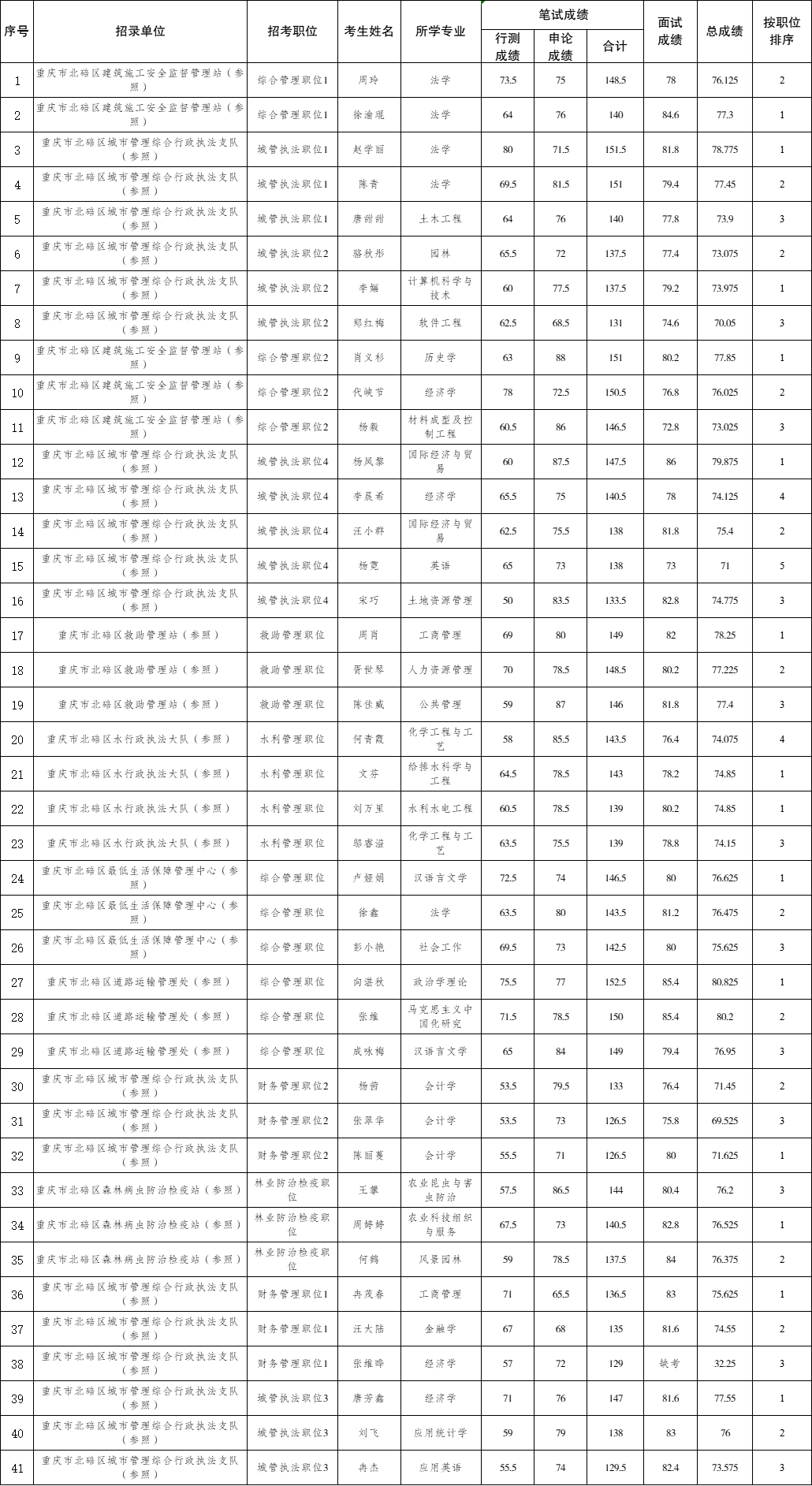 根据公告规定,我区组织开展了笔试、面试工作,现将参加笔试、面试人员的各项成绩公布如下: