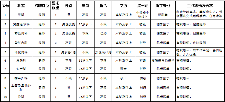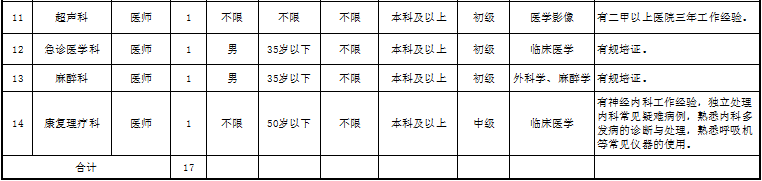 某三甲医院人员需求计划表