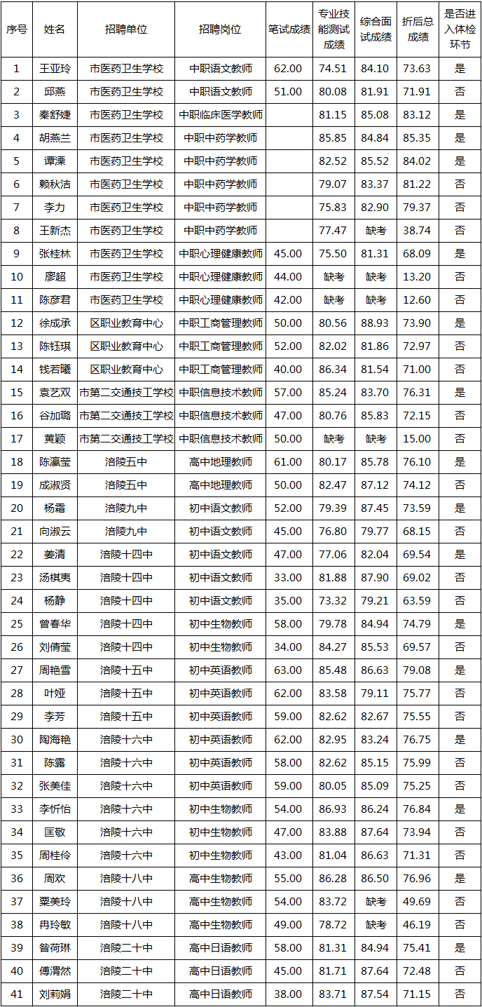 根据《重庆市涪陵区事业单位2022年第一季度考核招聘工作人员简章》要求,现将重庆市涪陵区教育事业单位2022年第一季度考核招聘工作人员总成绩公布如下。