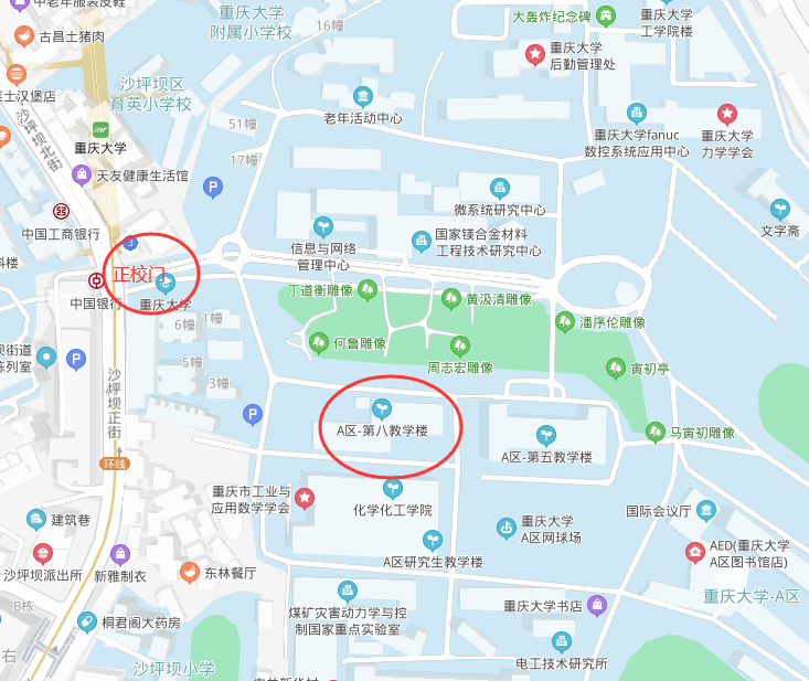 地点:重庆市沙坪坝区重庆大学A区八教学楼301、304教室。