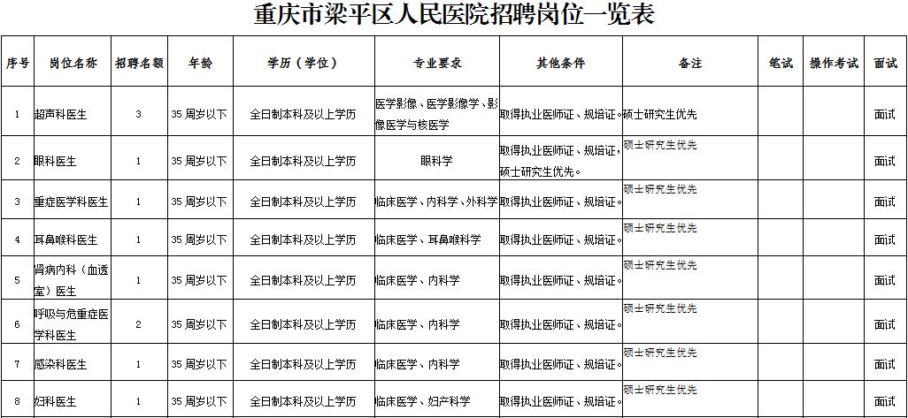 五、招聘岗位详见《重庆市梁平人民医院招聘岗位一览表》