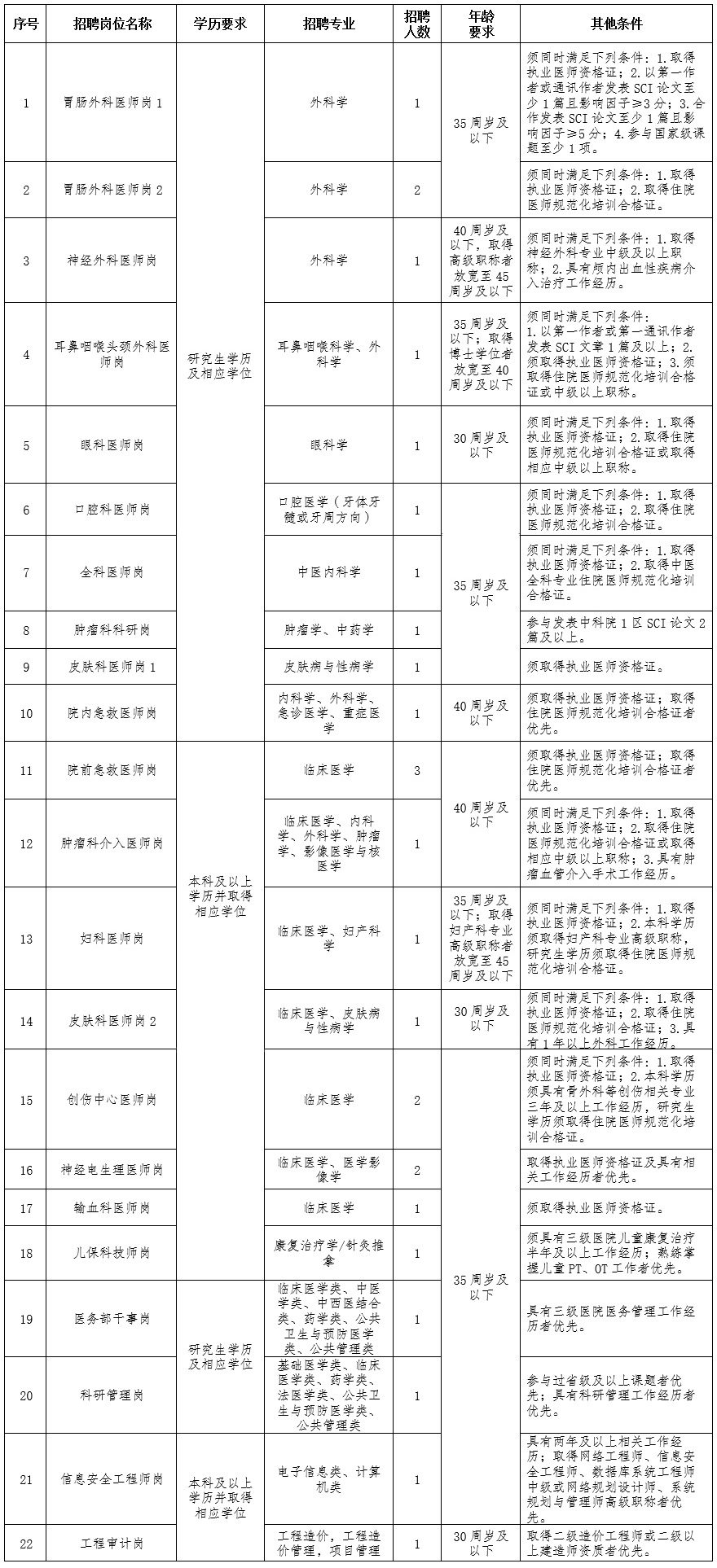 博士人才请将个人简历发送至医院邮箱cqsjjqzxyy@163.com,并在邮件标题中注明应聘岗位。