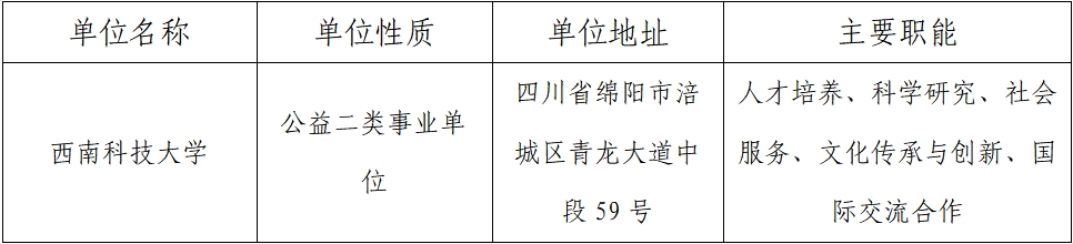 根据《事业单位人事管理条例》、《事业单位公开招聘人员暂行规定》和《四川省省属事业单位公开招聘工作人员实施细则(试行)》等有关规定,经四川省教育厅备案,我单位拟面向社会公开招聘25名工作人员。现将公开招聘有关事项公告如下(本公告同时在四川省人力资源和社会保障厅(以下简称省人社厅)官网[http://rst.sc.gov.cn,下同]“人事考试”专栏、省教育厅官网[http://edu.sc.gov.cn,下同]和西南科技大学网站[http://www.swust.edu.cn/,下同]上发布)。