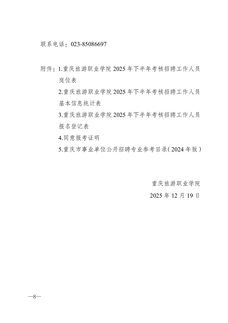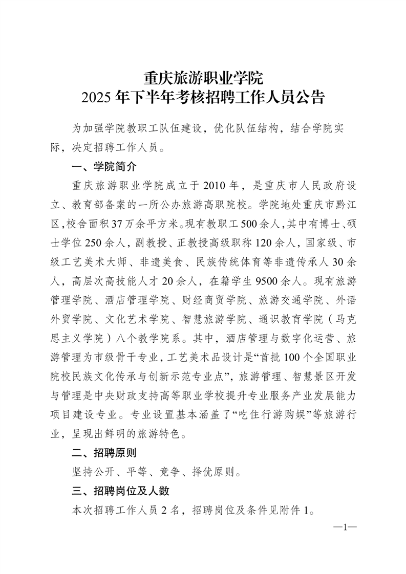 附件1:重庆旅游职业学院2025年下半年考核招聘工作人员岗位表.xlsx