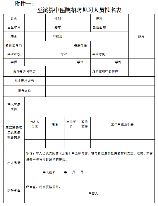 3、报名地点:巫溪县中医院行政办公区人事科。