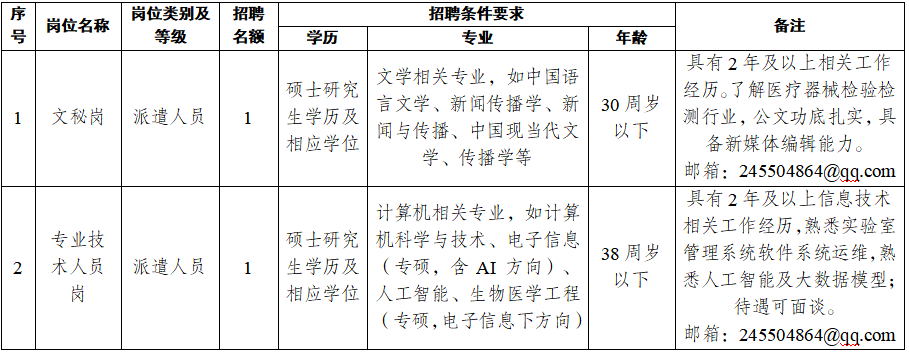 因工作需要,重庆医疗器械质量检验中心以公开、平等、竞争、择优的原则,面向全国招聘工作人员。